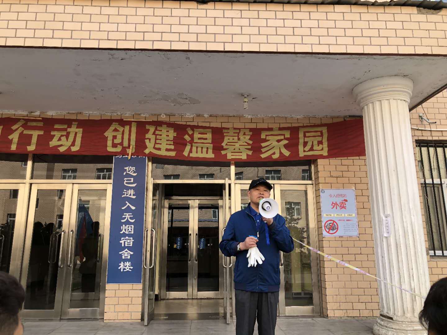 早上7点30分,王旭副书记在12号公寓楼下为全体员工召开动员会。