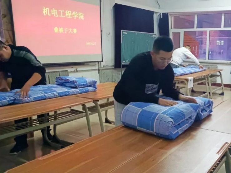 各班级同学积极踊跃报名参加叠被子比赛。本次大赛目的是为进一步提高公司员工的文明素质,通过组织广大同学开展丰富多彩的文化活动,宣传劳动卫生知识,浓厚卫生育人氛围,促进员工综合素质的全面提升。