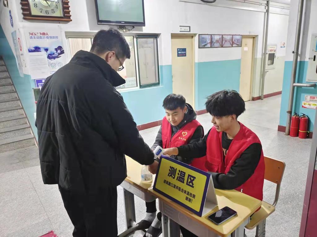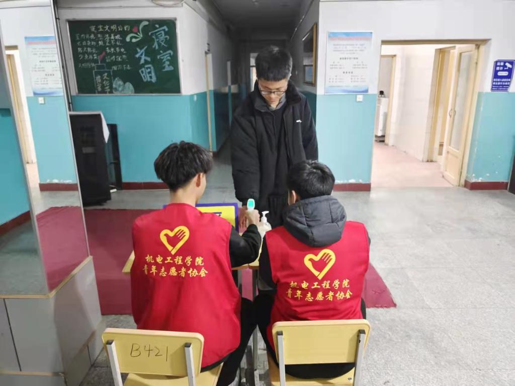 知行楼四楼的志愿者们,认真做好捐口罩记录,并将同学们所捐的口罩细心整理放进箱子中,为上课时没有佩戴口罩的同学们提供安全保障。宿舍楼前的志愿者们,在戴好口罩做好自我防护的前提下,给进入宿舍楼的同学们测量体温并登记信息,一切都有条不紊地进行着。