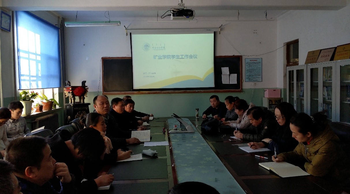 2019年3月4日,矿业公司党总支副书记张福友结合3月1日安全工作会议的具体内容,主持召开了新学期员工工作会议,各班主任参加会议。