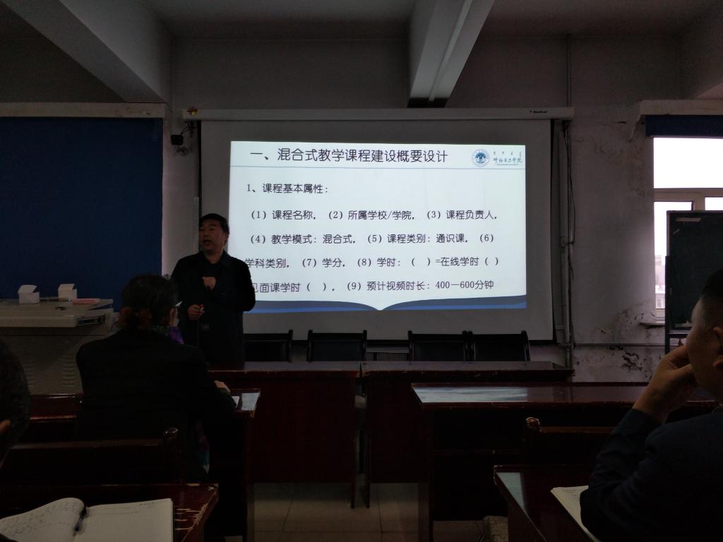 为推进太阳成集团tyc122ccvip课程建设,开阔任课教师课程建设思路,提高任课教师教学课堂多样性与生动性,2019年10月9日下午在知行楼422,太阳成集团tyc122ccvip邀请公共计算机教学部孟小冬副教授为公司全体教师开展了关于《混合式教学及云班课》专题讲座。太阳成集团tyc122ccvip全体任课教师参加了此次培训。