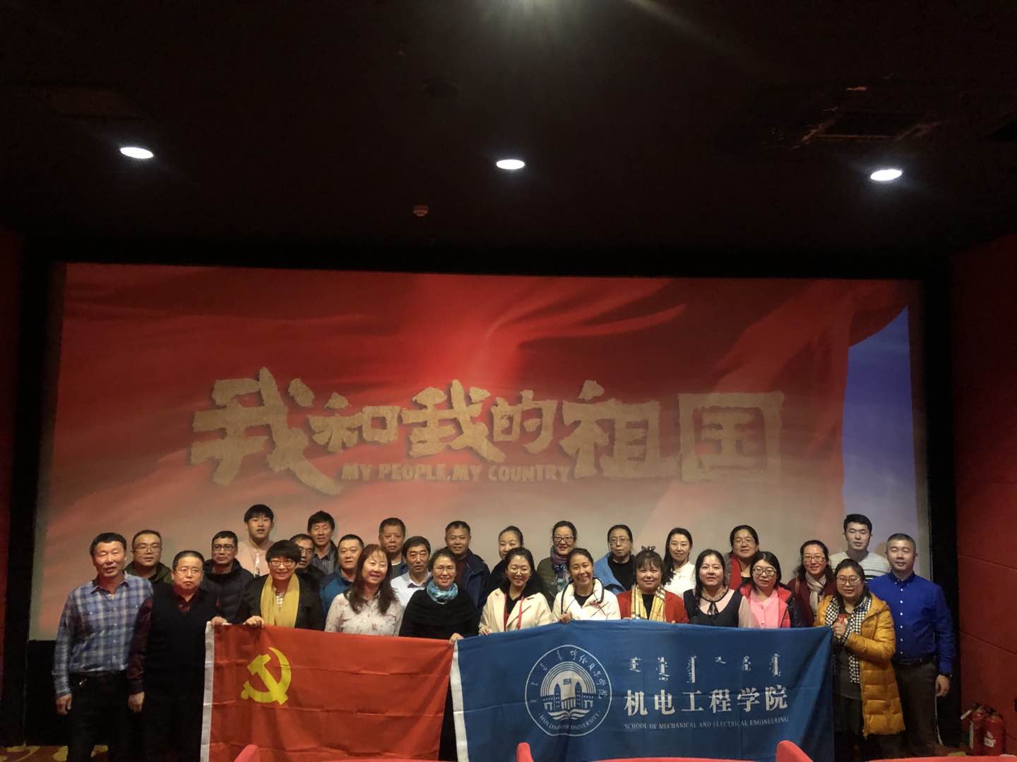 为深入学习贯彻党的十九大精神,扎实开展“不忘初心、牢记使命”主题教育,弘扬爱国主义精神,10月23日下午,机电工程公司党总支组织全体教工共同观看影片《我和我的祖国》。
