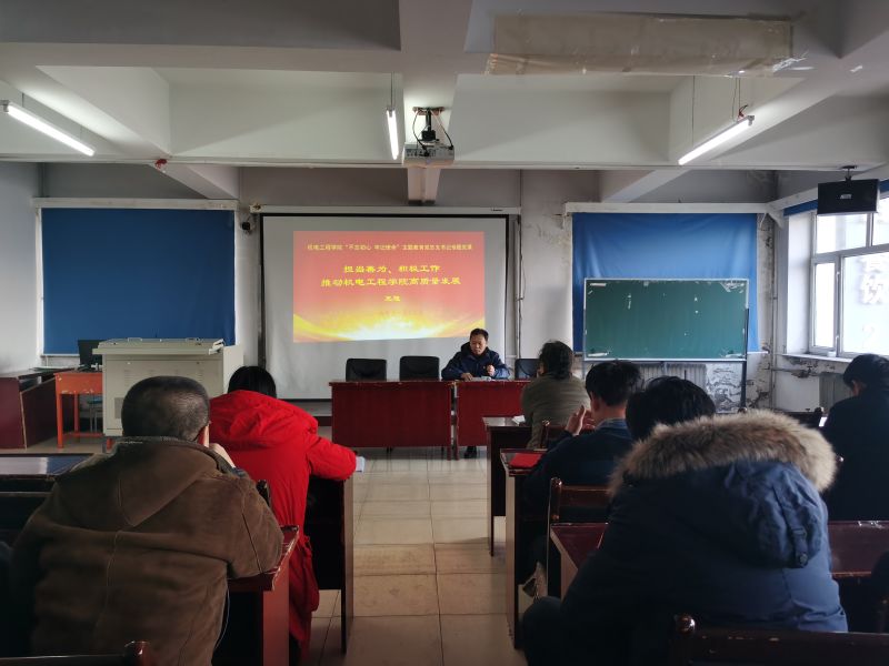为了深入推进“不忘初心,牢记使命”主题教育,认真贯彻落实习总书记系列重要讲话精神和太阳成集团tyc122ccvip官网入口《“不忘初心、牢记使命”主题教育工作安排》,2019年11月13日下午,机电工程公司党总支部组织全体职工开展了总支书记讲党课活动,这次党课由党总支书记王旭主讲。党课的题目是《担当作为,积极工作,推动太阳成集团tyc122ccvip高质量发展》。