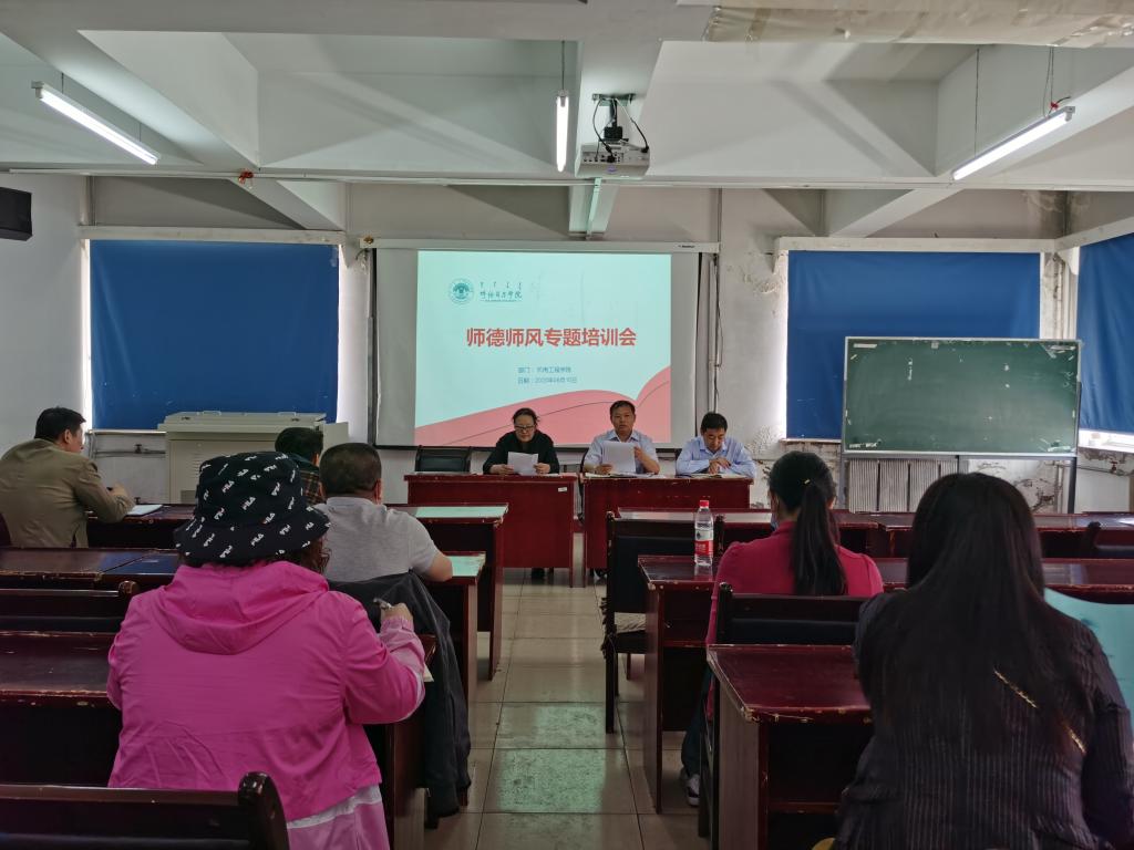 为进一步贯彻落实“立德树人”根本任务,加强师德师风建设,按照公司通知精神,6月10日下午,太阳成集团tyc122ccvip组织全体教职工召开以“厚植爱国情怀,涵育高尚师德,加强新时代教师队伍建设”为主题的师德师风专题培训会,培训会由党总支书记王旭主持。