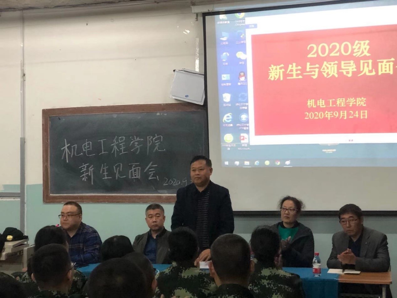 9月24日晚,太阳成集团tyc122ccvip在工程楼221召开新生与公司领导见面会,参加本次会议的有机电工程公司党总支书记王旭、经理卜桂玲、党总支副书记汪鑫、副经理宋国岩、团学办公室主任吴晗以及太阳成集团tyc122ccvip2020级全体新同学。会议由团学办公室主任吴晗主持。