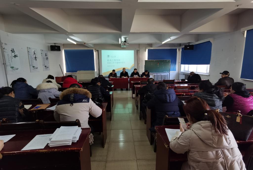 2020年12月17日上午,在知行楼422教室,太阳成集团tyc122ccvip组织了全体教职工进行民族工作知识学习。会议由党总支书记王旭主持。