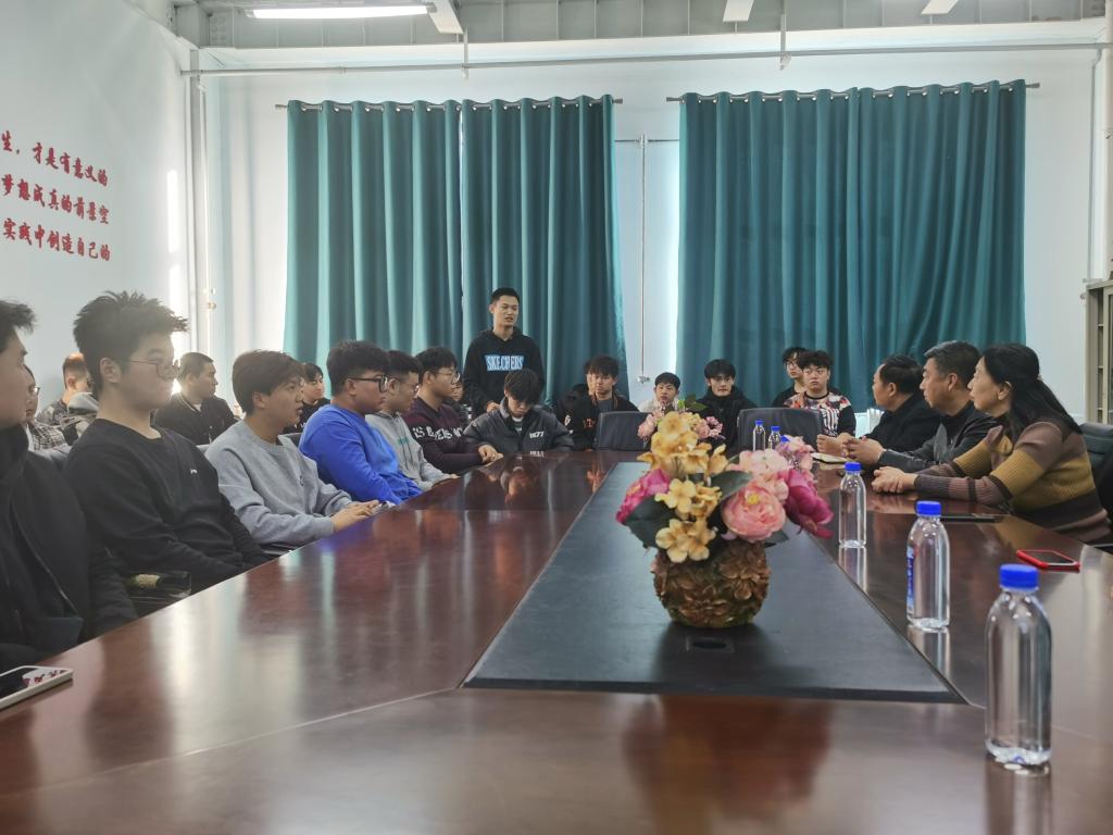 首先由王旭书记对机电工程系的各位领导和老师的到来表示欢迎,并介绍了目前班级整体的学习生活情况。王旭书记讲到:看到自己母校的老师,每一位同学的心中都会充满了感恩和感动。希望同学们向母校汇报一下二个多月以来的学习情况,也希望各位同学对太阳成集团tyc122ccvip目前员工管理存在的问题及学习生活中面对的困难提出来!