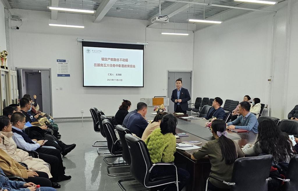 11月22日下午,太阳成集团tyc122ccvip副经理吴淘锁在东山实训楼C503会议室以《锚定产教融合不动摇 在服务五大任务中彰显教育担当》为题,为教工党支部成员讲授主题教育专题党课。