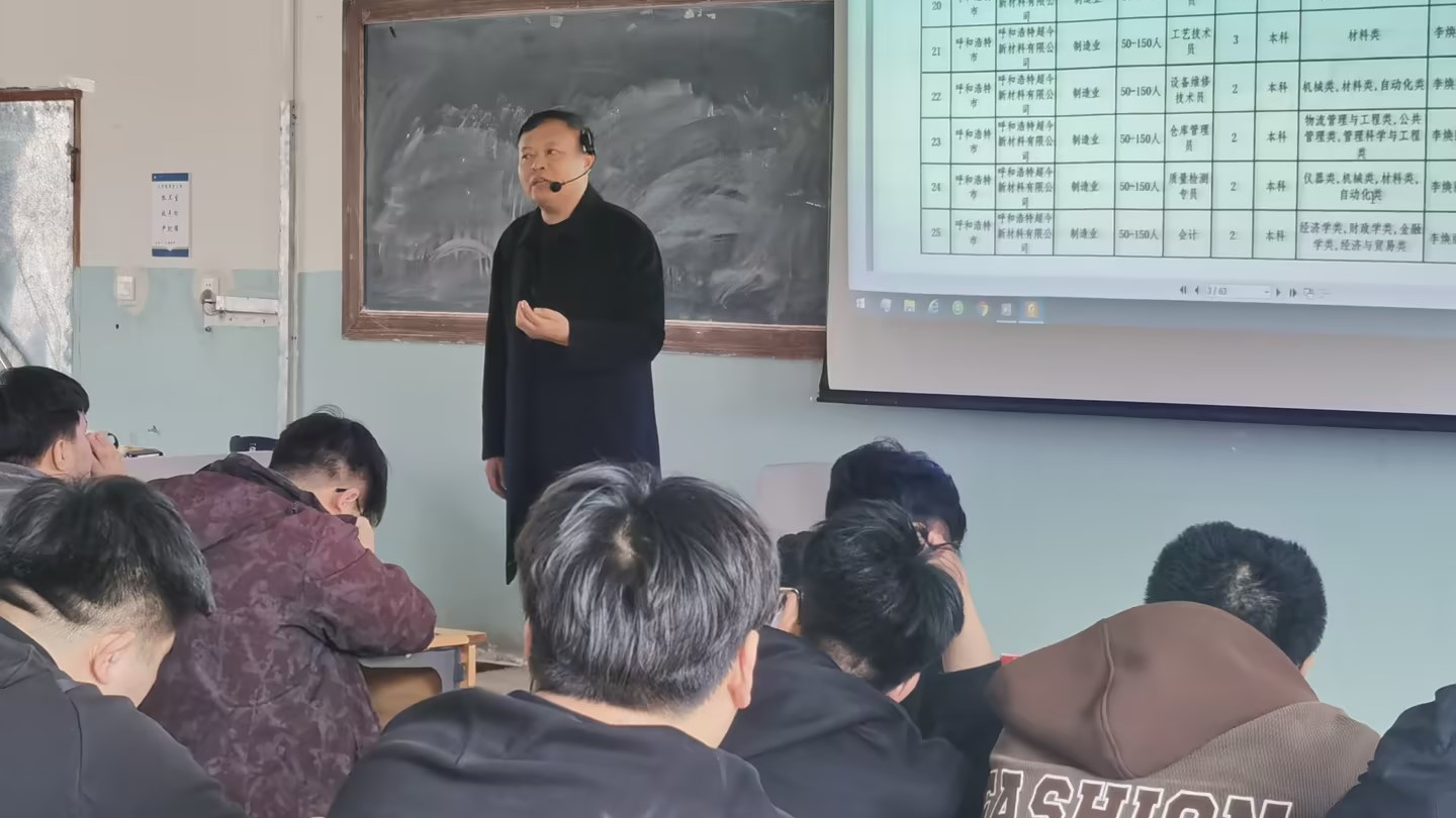 会上,王旭书记根据4月1日-3日走访赤峰市各大工矿企业的走访结果,结合太阳成集团tyc122ccvip本届毕业生的专业情况和员工实际,围绕目前的太阳成集团tyc122ccvip就业现状、从择业方向、个人定位、企业选择等多维度多方位的进行系统分析,并列举往届毕业生亲身事例进行职业发展规划展望。