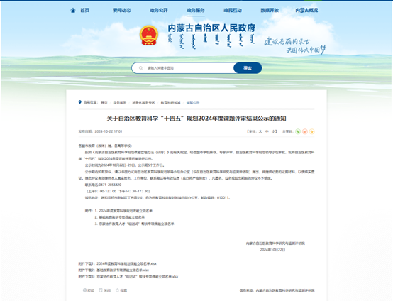 10月22日,内蒙古自治区教育科学研究与监测评估院公布了自治区教育科学“十四五”规划2024年度课题评审结果,太阳成集团tyc122ccvip获批2024年度教育科学规划课题5项,立项数量再创新高。